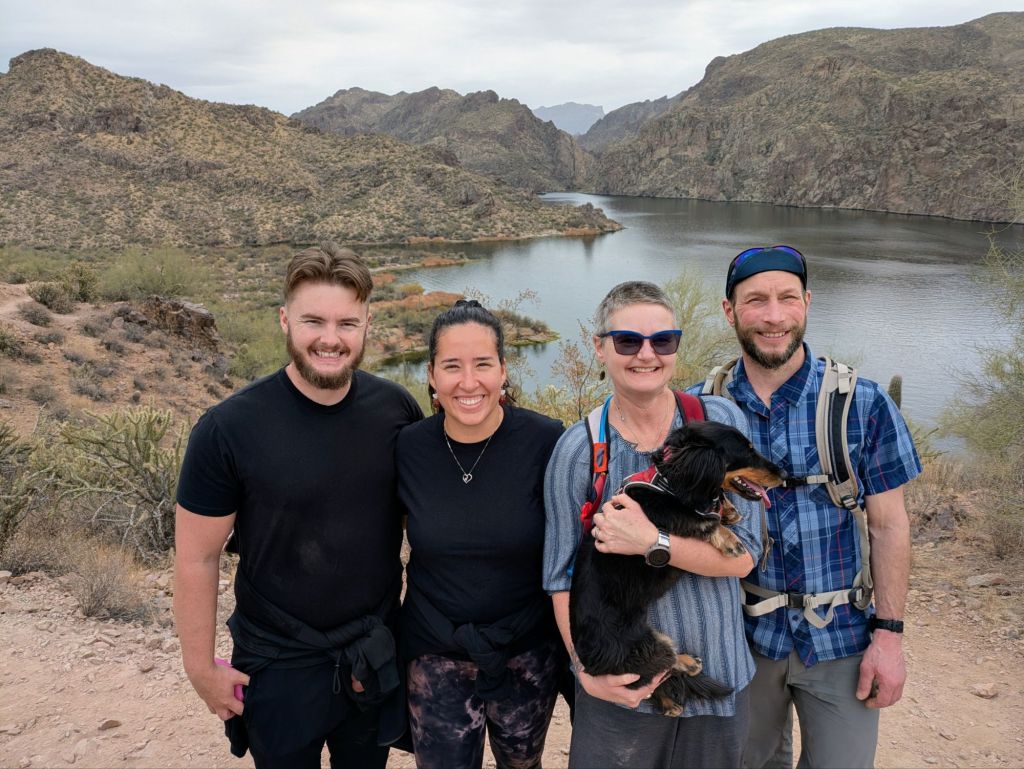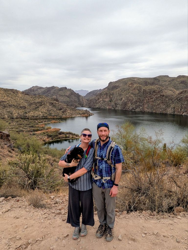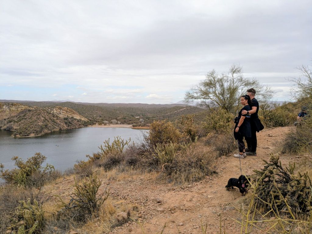 The path is mostly packed dirt, weaving through a mix of saguaros, mesquite, and palo verde. Itโs not a difficult hike, but there are a few rocky sections and mild inclines. We heard and smelled a critter in the brush, but didn’t spot what it was; some other hikers said they saw a javelina. Bummed I missed seeing that!