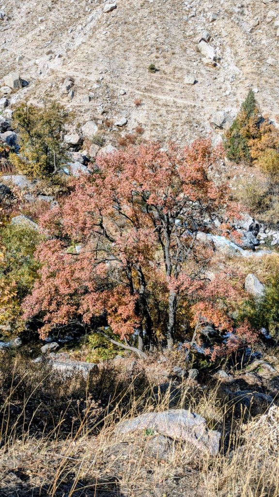 The hike was a fairly mellow 3 mile out and back with 1,700 elevation gain. The challenge was starting at ~5,000 feet. 95% of Tajikistan is considered mountainous, with the most famous being the Pamirs. The mountains here, even these relatively smaller Fann Mountains, are so severely tall and rocky. And then, in this gorge, the loveliest stream and fall colors were such a respite.