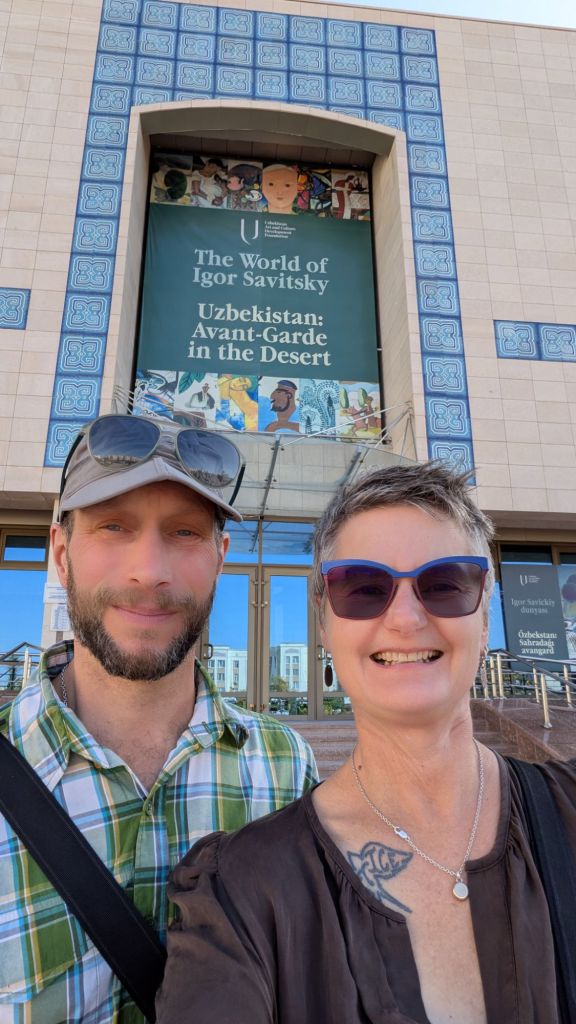 Heather told us about an old documentary about the museum, and we watched that before our trip. The Desert of Forbidden Art is available on YouTube and is pretty great – not only as background and context for the art collection, also as a grounding in the history of Karakalpakstan, and Soviet Era impacts on the region and on artists during that time.