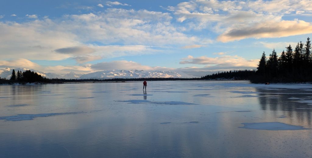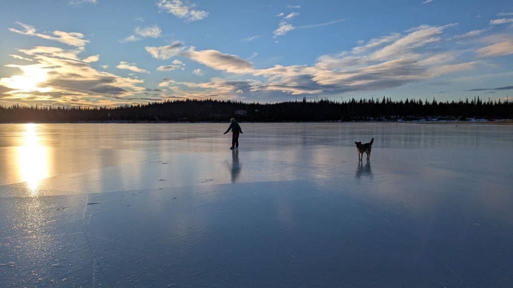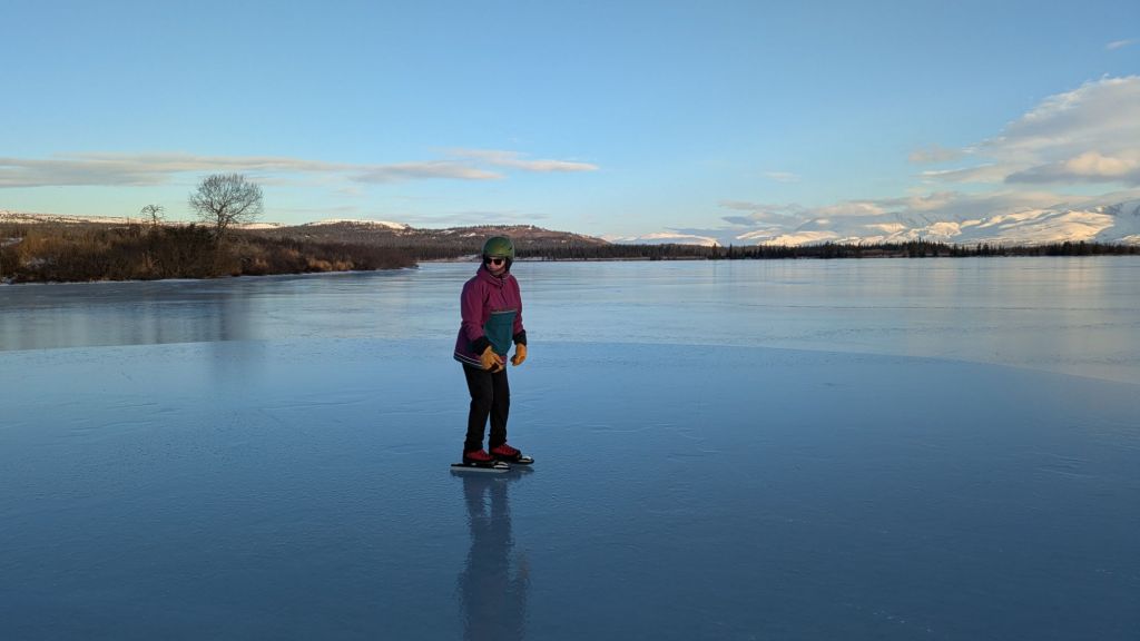 Meanwhile, Beluga Lake is offering much more accessible skating. The ice isn’t quite as delightful, but is still very skateable.